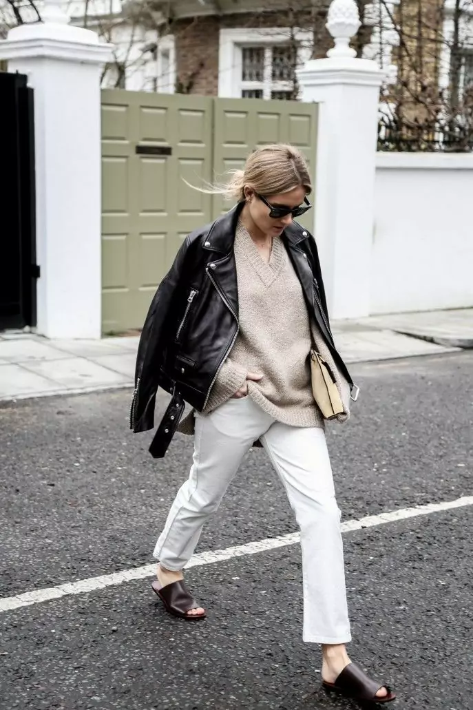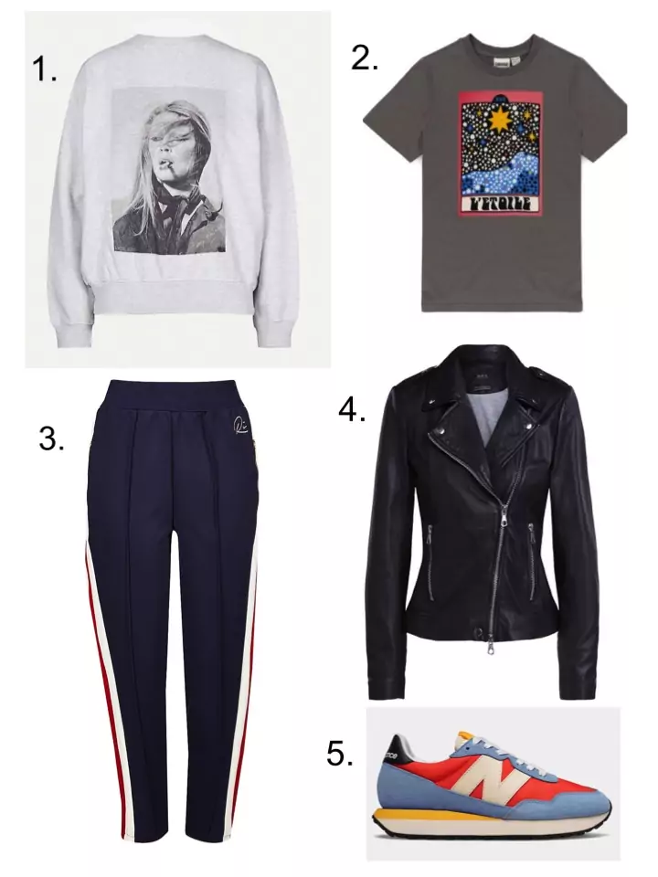 Wondering what you’re going to do with all that loungewear you bought last year? Adding a leather biker jacket seems to just elevate it from ‘slobbing around the house’, to ‘look, I can wear this outside too’. I’ve seen others wear tracksuit trousers with ‘real’ shoes but I can’t quite get on board with that, especially not with high heels. Feels a bit J‑Lo in the P Diddy years to me. But I’m all for a high pony and a white shirt with a side-stripe jogger and a biker. Stick with the trainers though, I reckon.