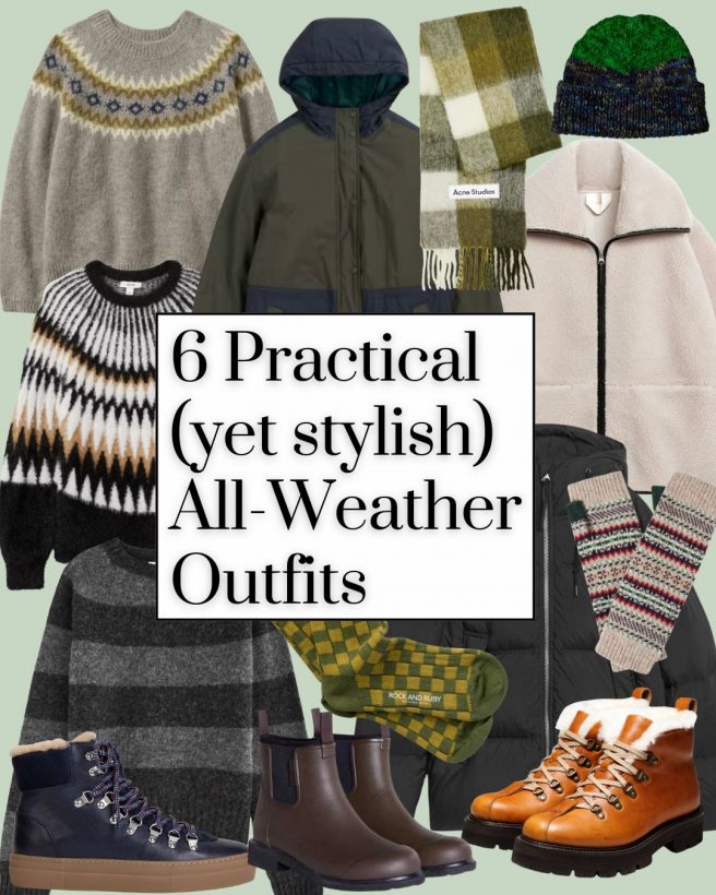 The forecast says cold and sunny. Do we believe it? Probably not, but we’re going to chance it without a waterproof. Just some good, comfortable boots for walking, a warm chunky-knit sweater and maybe even some kind of gilet.