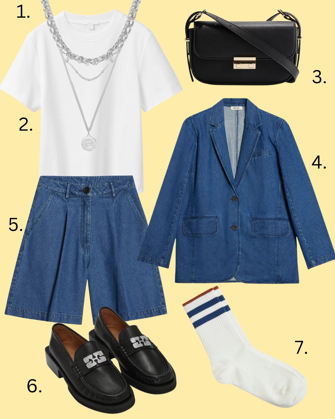Let’s have a look at six ways to style your long denim shorts…