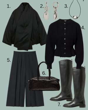 I do love my wide-leg jeans and trousers, but I definitely do not love arriving at my destination with a slow creeping feel of dampness around my ankles. So a pair of cropped trousers or jeans and some decent boots are a must as we head into rainy wintery days. I saw these traditional Japanese hakama trousers in Muji last week when I was browsing their acrylic jewellery storage options (which are great, by the way – you can actually see what you’ve got instead of it all being hidden away in a solid box), and I thought they would work really well with a good pair of knee-high boots. A chic, yet practical look for a rainy day.