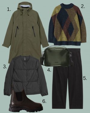 To counterbalance the frothy party outfits of last week, I thought we’d go for some more down-to-earth-and-quite-sensible looks this time – the kind you might actually wear day to day. There’s an emphasis on practical, weather-appropriate pieces too. I know this can be a bit dull, and it’s not as fun as thinking about getting dolled up in your finest, but sometimes we need to consider our wardrobe and what we actually wear the most.