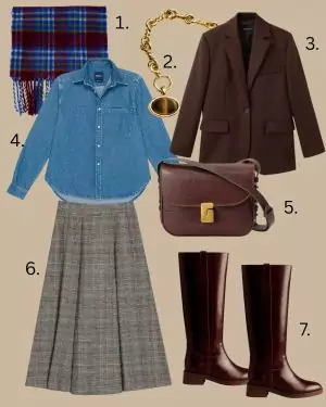 A big trend this season. To avoid looking like Mrs Slocombe, dress down your pleated midi skirt with a denim shirt. Or you could, of course, go the full ‘Are You Being Served?’ and add a pussy-bow blouse and a waistcoat. Purple hair optional.