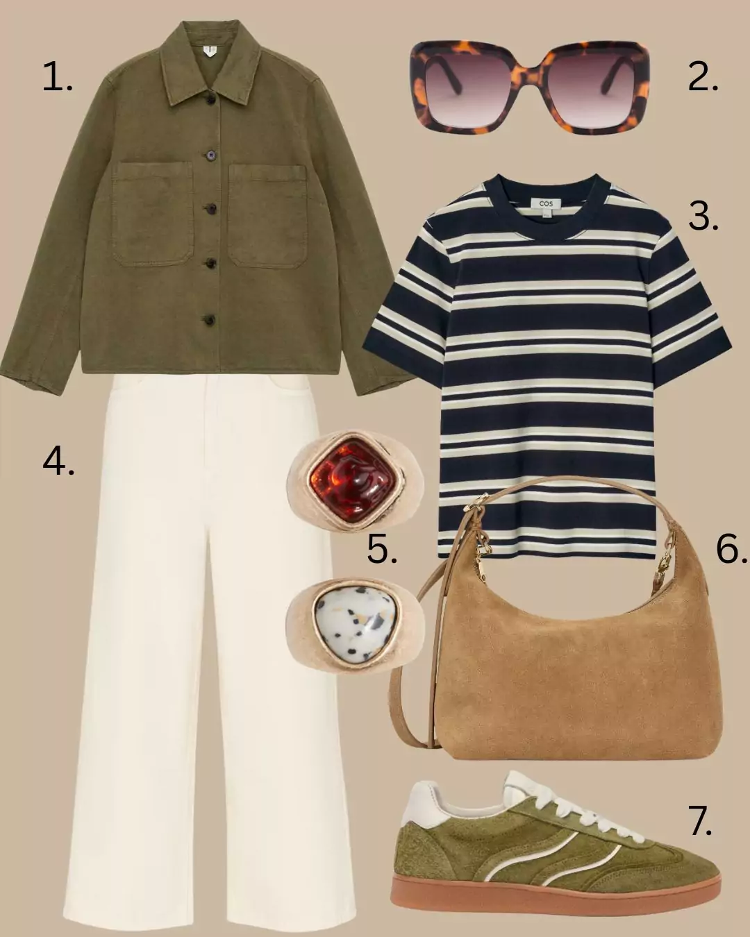 Because it’s always a classic combination and it works so well with your cream or white jeans. And I can’t sing the praises of the COS clean-cut T‑shirt enough. I now have it in three colours. It’s the perfect weight, length and fit. Also washes very well, which is very important with T‑shirts. I have some from a couple of other brands that have totally lost their shape after a few goes in the machine, which is no good at all.
