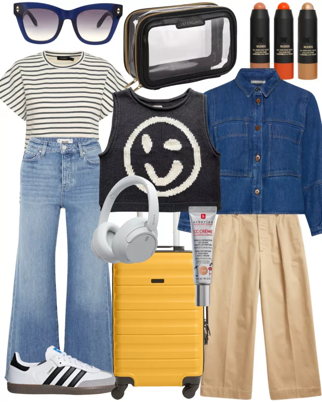 I’ve cheated on the packing here as I bought these trousers while I was in Amsterdam, but they did fit in my hand luggage on the way back so it’s not that much of a cheat. A good pair of neutral trousers will take you anywhere. This denim jacket from Sessun has been my most worn jacket of the summer so far; it’s soft and light and the perfect boxy shape. Shout out to editbrandcollection who have made THE perfect white T‑shirt. It will go to the top of the plain white T‑shirt leaderboard next time I do that chart.