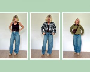 So for now, we’ll just focus on some light layers at Uniqlo. You should know as well as I do by now that Uniqlo is the best place on the high street for basics: T‑shirts, simple sweaters, classic jackets and really good jeans. They’ve just launched an excellent new jean style too —  it’s called the Baggy Curve and that’s kind of exactly what it is. Think a wide-leg jean with a hint of barrel shape. They also come in three leg lengths. I got the 28/31 and they fit like a dream. For reference, I’m 5’7, usually a size 10, and I always buy a medium in everything from Uniqlo.