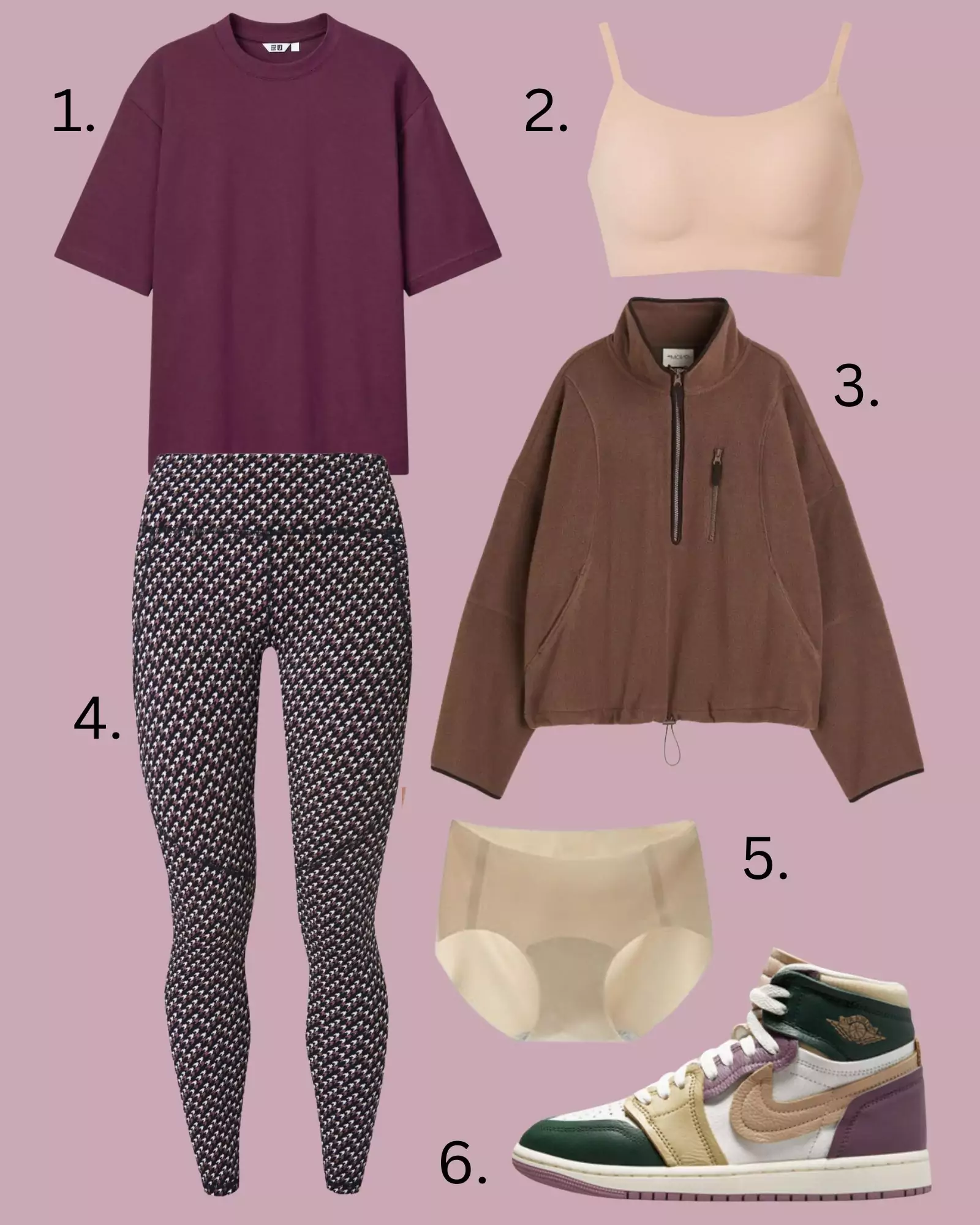 I have tried a fair few of sports leggings and I always go back to the full length power leggings from Sweaty Betty. Wear with your trusty no show knickers. A good (cheaper) alternative to work out t shirts are the Uniqlo mens Airism T shirts. They are good for sweat as they keep you cool and wash really well.