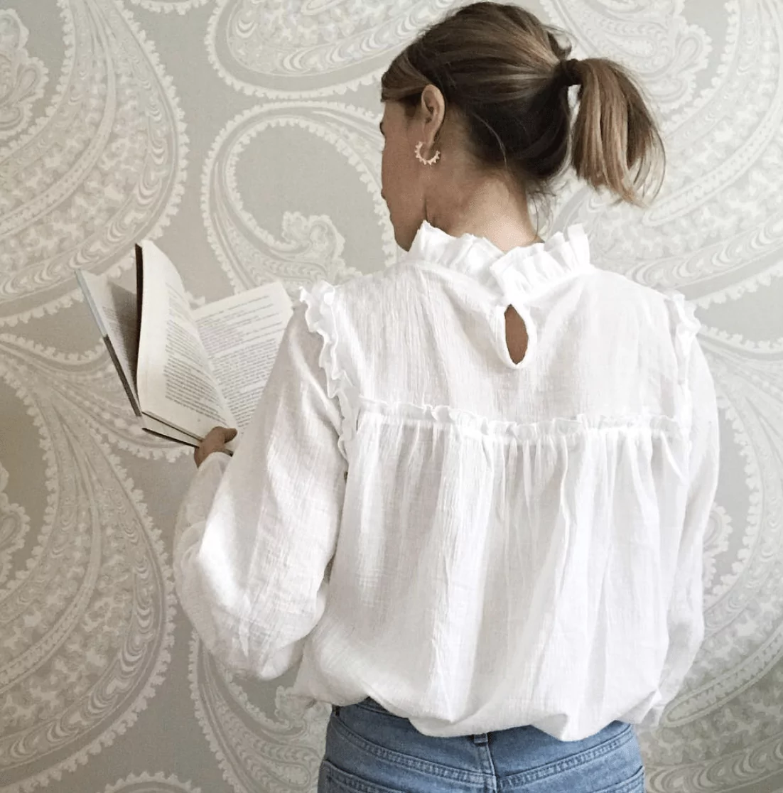 Natasha @wearandwhere is a big big fan of the blouse. The book she’s reading is probably a self help book for people who buy too many white lace blouses…
