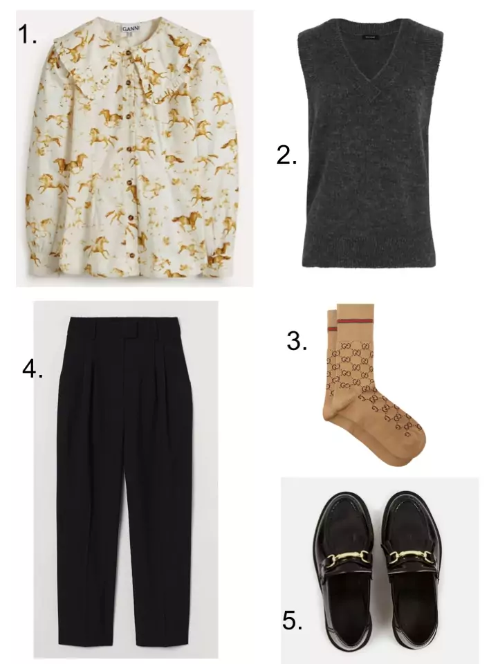 Talking of boobies or lack thereof, if you’ve got big jugs then look for a blouse that can unbutton nicely as I know high necks aren’t always your friend. I think most of the ones I’ve found would look just as good undone a bit. In the same way we wear our lace blouse to unbutch dungarees, wear manly loafers with your piecrust to stop you looking too much like a homage to Princess Di. Although to be fair, as we discussed a few weeks back, early Diana is still a fashion icon.
