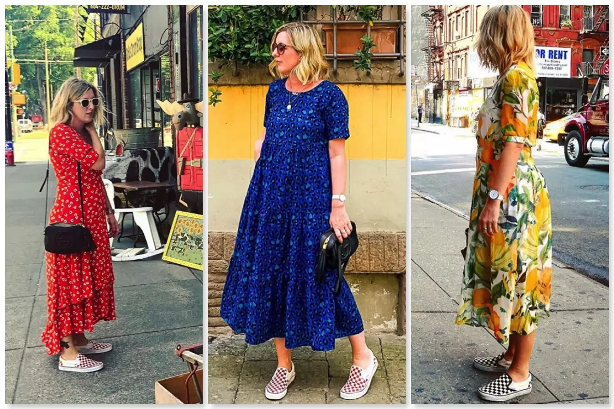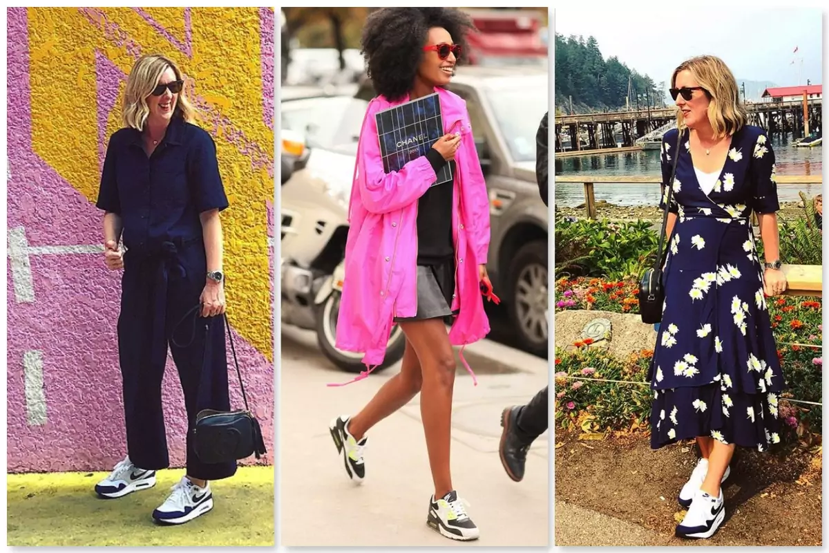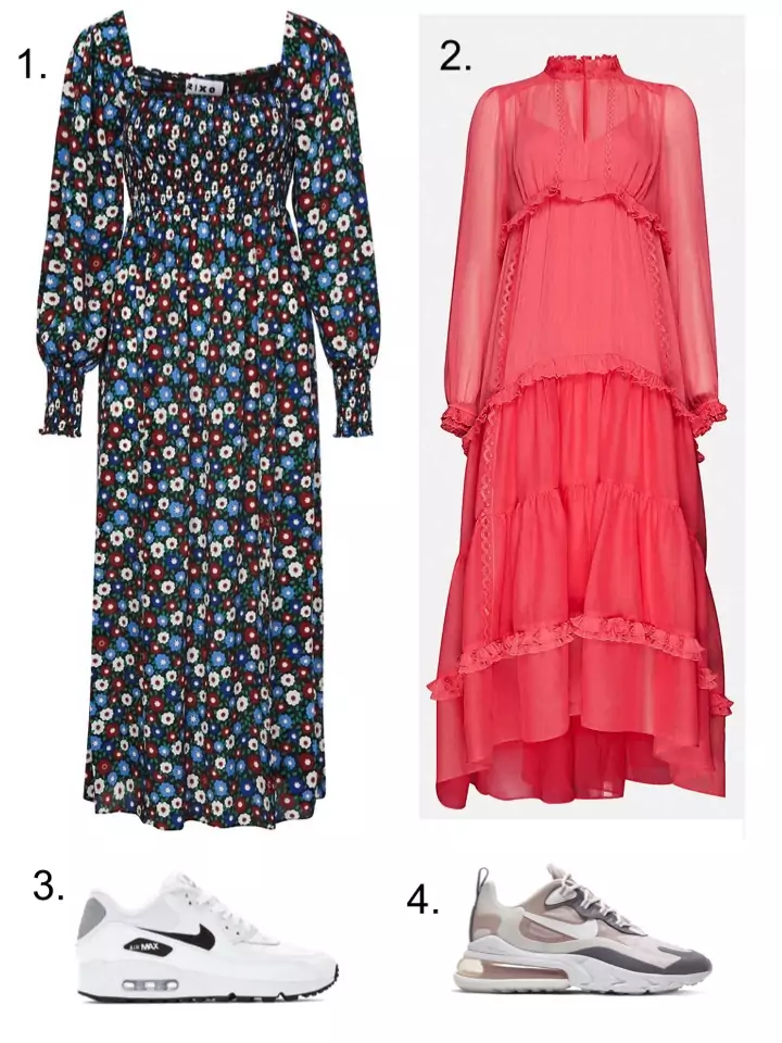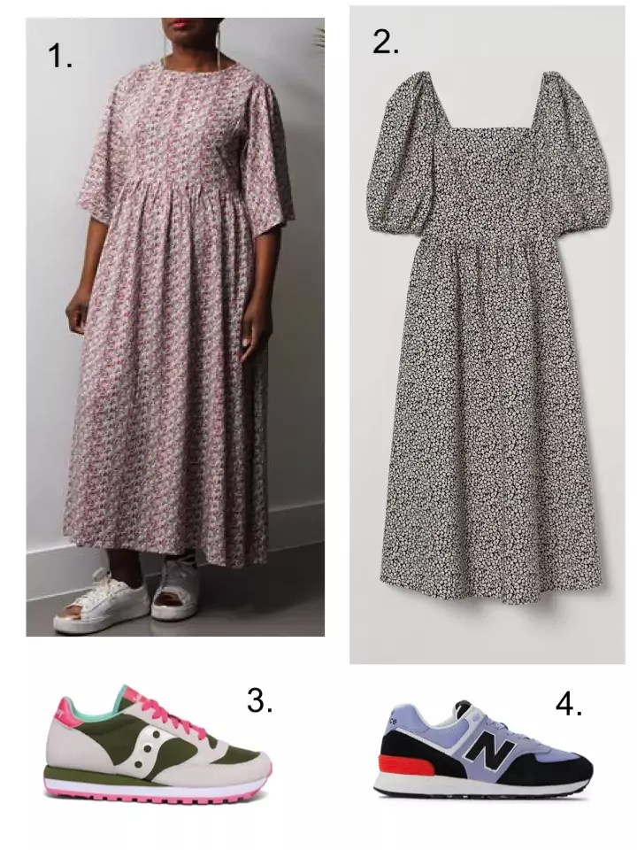 I’ve lumped these two in together as they are very similar styles. Similar price too, usually not more than £65, and often you can find them on sale. Unlike a lot of trainers they also come in a big variety of colours. so if you’re looking for a unique combination, you might well find it here. Both are great for all day wear and work a treat with a floral dress. Especially my current favourite ones from Kemi Telford (below) and Justine Tabak (above right). I would take your regular size in the Saucony Jazz, but go up half a size with New Balance, they tend to come up a bit small.