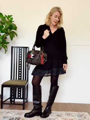 I have to mention these Bryce Equestrian-style boots again too. A slight departure for me as riding boots are not usually not my forte, but I’m really loving these ones. I think I like them because they are quite loose around the top. i don’t like a boot that clings to my calves. I’ve been wearing them with short skirts and long coats —  it’s giving a touch of Claudia W.  I went up half a size so I can wear thicker socks with them through winter.