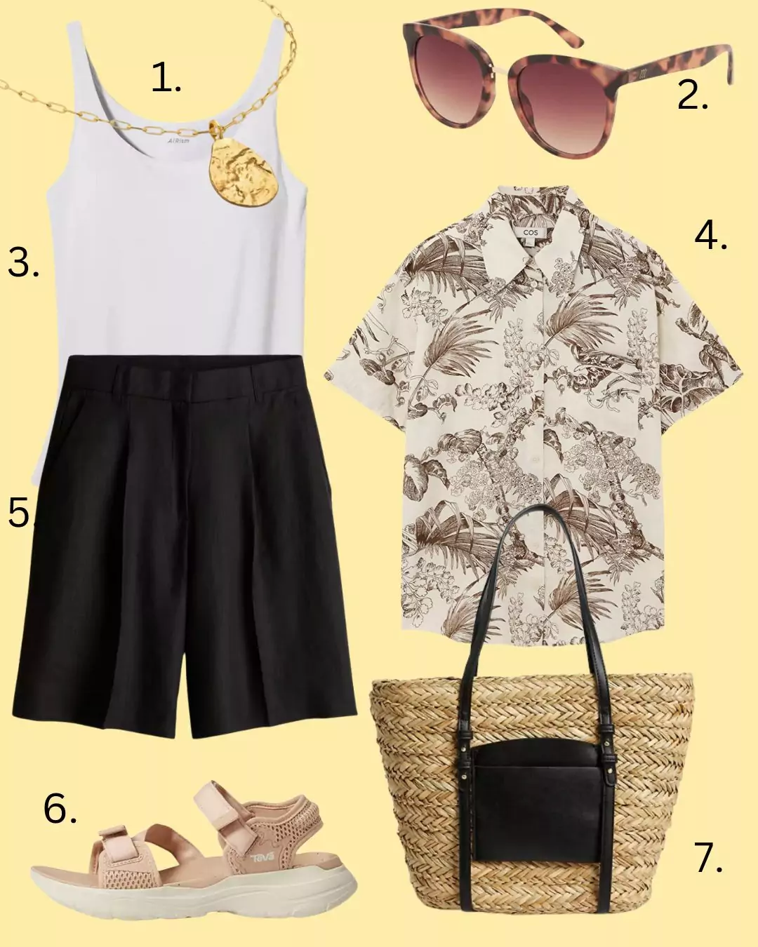 • 2 x SHORTS: Let’s say one denim and one linen pair. See here for more shorts ideas. I’m not including the co-ord pair here, but that’s an extra you can mix in.