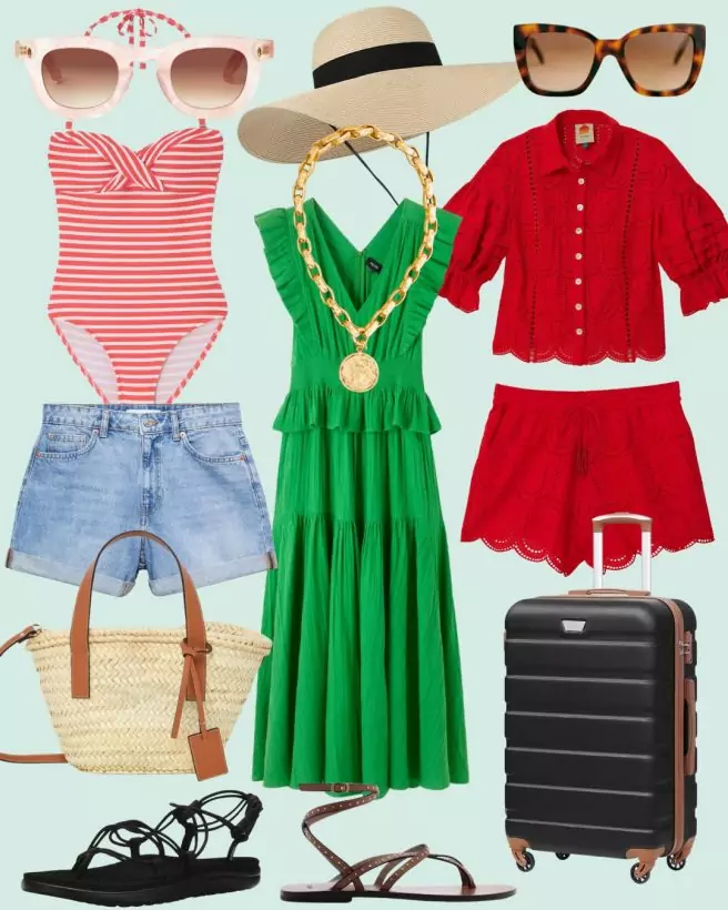 • 2 x BAGS: One large tote for the plane and the beach – I’d go for a basket bag. And one small cross body for sightseeing and evening.