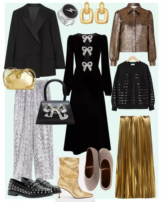 Be it a pair of on-trend silver trousers, something in velvet or even a full-on sequinned pair, fancy pants are an easy thing to add bling to your otherwise fairly ordinary outfit. Plus you can wear flat shoes. Always a good idea if any dancing is on offer.