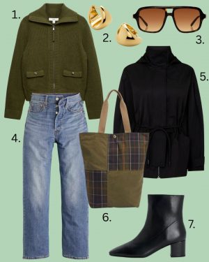 These Levi’s Ribcage jeans are the ones I still have from a few years ago. They say ‘ribcage’, but they aren’t that high – you can still breathe in them. The Levi’s website says they come up big, but I would say try your regular size as there is zero stretch. They make your bum look amazing, though, so that’s a win. Also, if you’re looking for a rain jacket that’s both practical and cool, have a look at this one from WAT The Brand; it’s very good indeed.