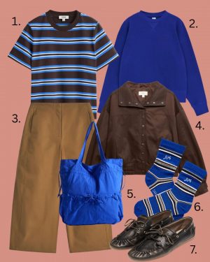 Apologies if you’re not a fan of brown, but if I haven’t already convinced you how useful it is, here’s another example of how it works with brighter, more unexpected colours. If you wore this with black, it might feel a bit jarring, but brown softens the look.