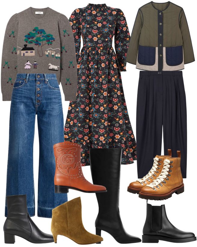 I’ll get into knitwear and warm coat specifics another time, as today we’ll focus on boots. Which boots go with which outfits? As ever, that’s a matter of personal choice, but here are some ideas for you that I particularly like. I’m still on the fence about cowboy boots, but quite a few of you wanted some options, so I am here to serve…