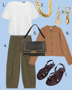 This is the blow-the-budget combat trousers option. I’m feeling slightly smug as I managed to find a pair of these Citizens of Humanity flight pants on Vinted the other week for nearly £200 cheaper than new. They’re perfect too. I would mainly wear them casually, but I might very well add my silk shirt, black blazer and red lipstick to wear in the evening. I might even (shock horror) add a heel. Don’t get carried away, though – at most it will be a one-inch kitten heel.