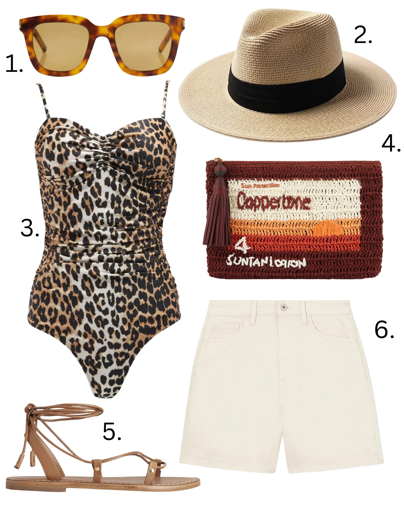 You could wear this one as a top as well as a swimming costume. Swap the shorts for a pair of black wide-leg trousers, add some big gold hoop earrings, a red lipstick and you’re ready for evening. I’m just trying to think of your luggage allowance here.