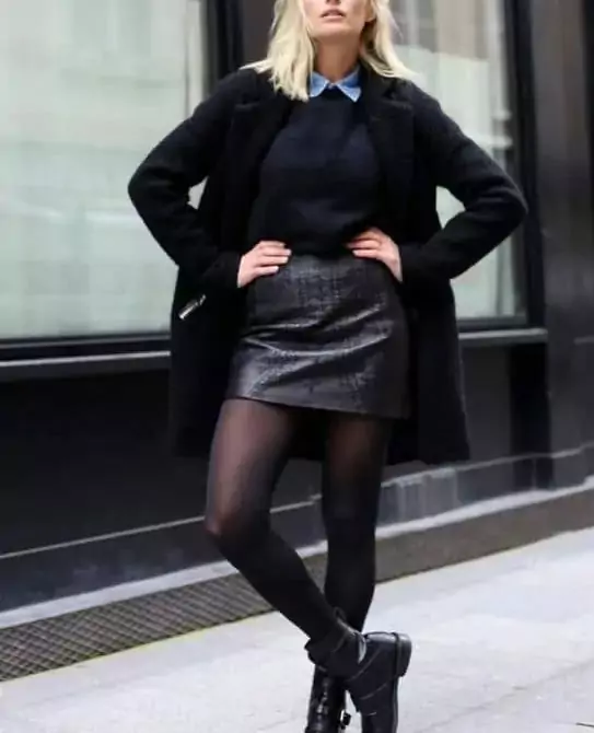 So, you’ve got to think less Liz McDonald and more Kate Moss when it comes to the leather mini. A loafer or a pair of ballet flats rather than a thigh boot or a stiletto. A high neck, rather than boobs on a platter. That old adage of ‘legs or tits’ does still ring true. I’ve never been blessed with boobs that could even make cleavage. Thinking about it, maybe that’s why I always went with the legs. I’ve mentioned tights before. They are important. I like a good 80–100 denier. My favourites are these by Falke. Not cheap, but last for years rather than weeks.