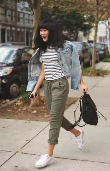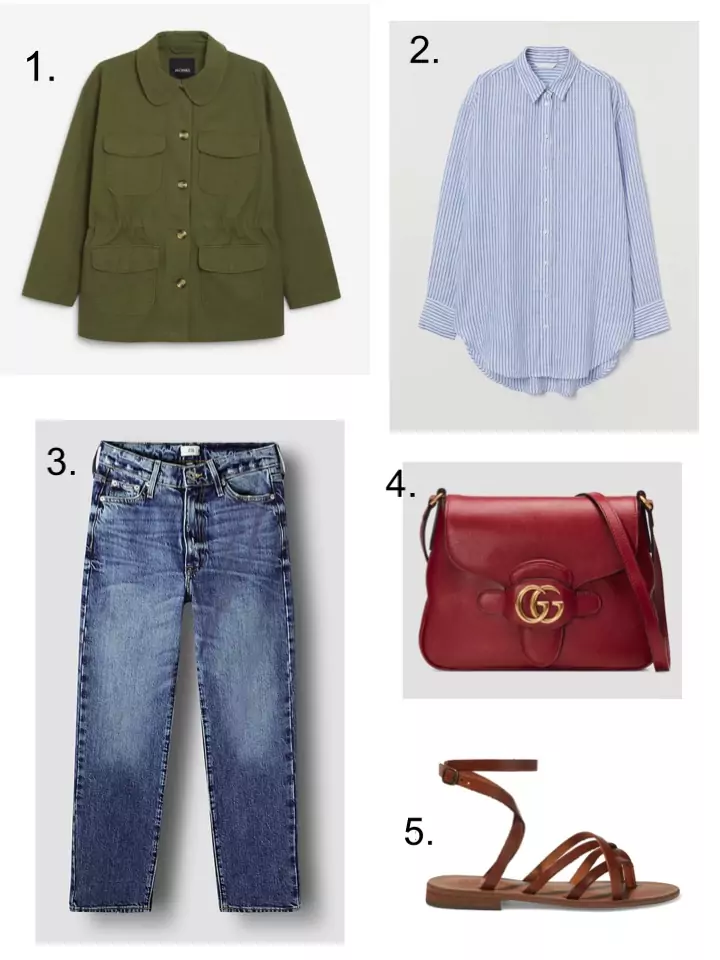 Of course we’d all love to look as effortlessly chic as Emmanuelle Alt (above). She has that elusive French style that I often try to emulate but can never quite convincingly pull off. But wearing your khaki jacket, with your straight leg jeans, blue shirt and fancy handbag will get you over halfway there, I reckon. Don’t underestimate the simple blue striped shirt. I’ve had a version of this H&M one for 10 years now and it comes out every summer. Perfect with your khaki trousers too, and even as a cover up on the beach.