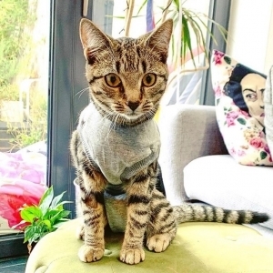 Sad news... Our lovely little cat Barbra got hit by a car last night and died. It was her 1st birthday. We will miss her sleeping in the worst possible position on the stairs. Rest easy little buddy x ðŸ˜¿