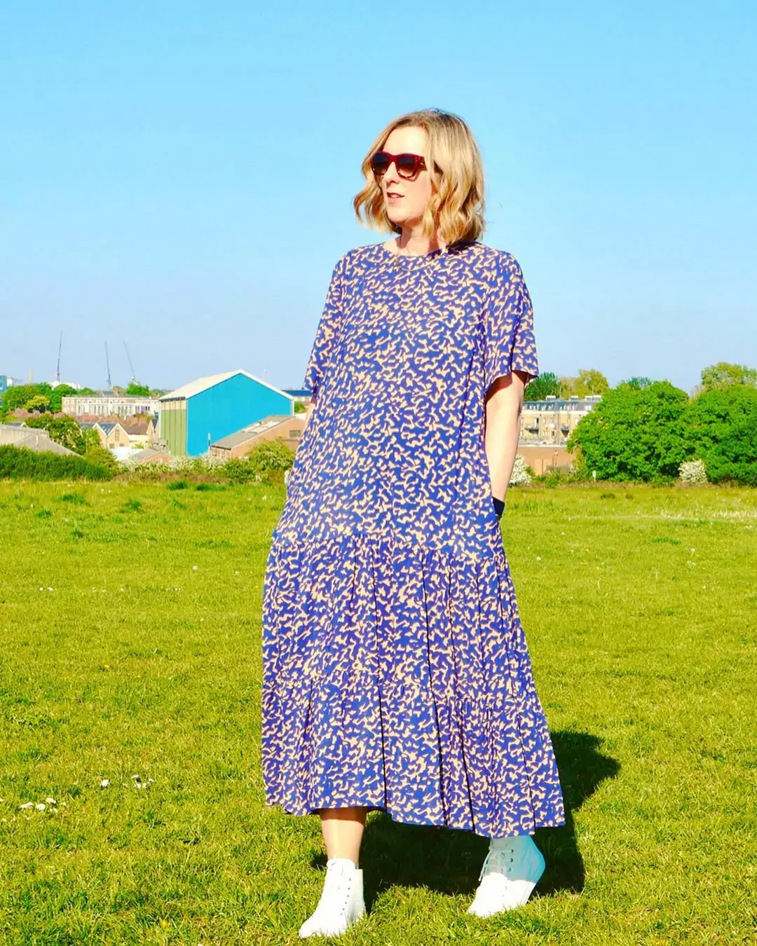 Combining our government approved daily exercise, which at the moment is being part of a 2 man and one woman penalty shoot out tournament, with the wearing of this great Modern Rarity dress by @johnlewisandpartners Don’t say I can’t multitask . . . Dress & trainers: @johnlewisandpartners [linked on stories]
